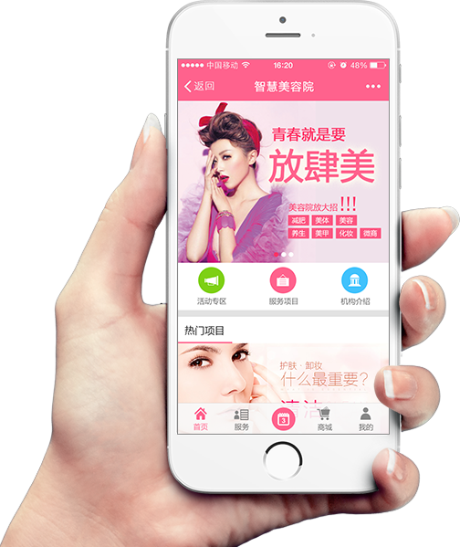 互聯(lián)網(wǎng)+美容院的,融合了移動(dòng)互聯(lián)網(wǎng)和傳統(tǒng)美容院,幫助美容院實(shí)現(xiàn)O2O